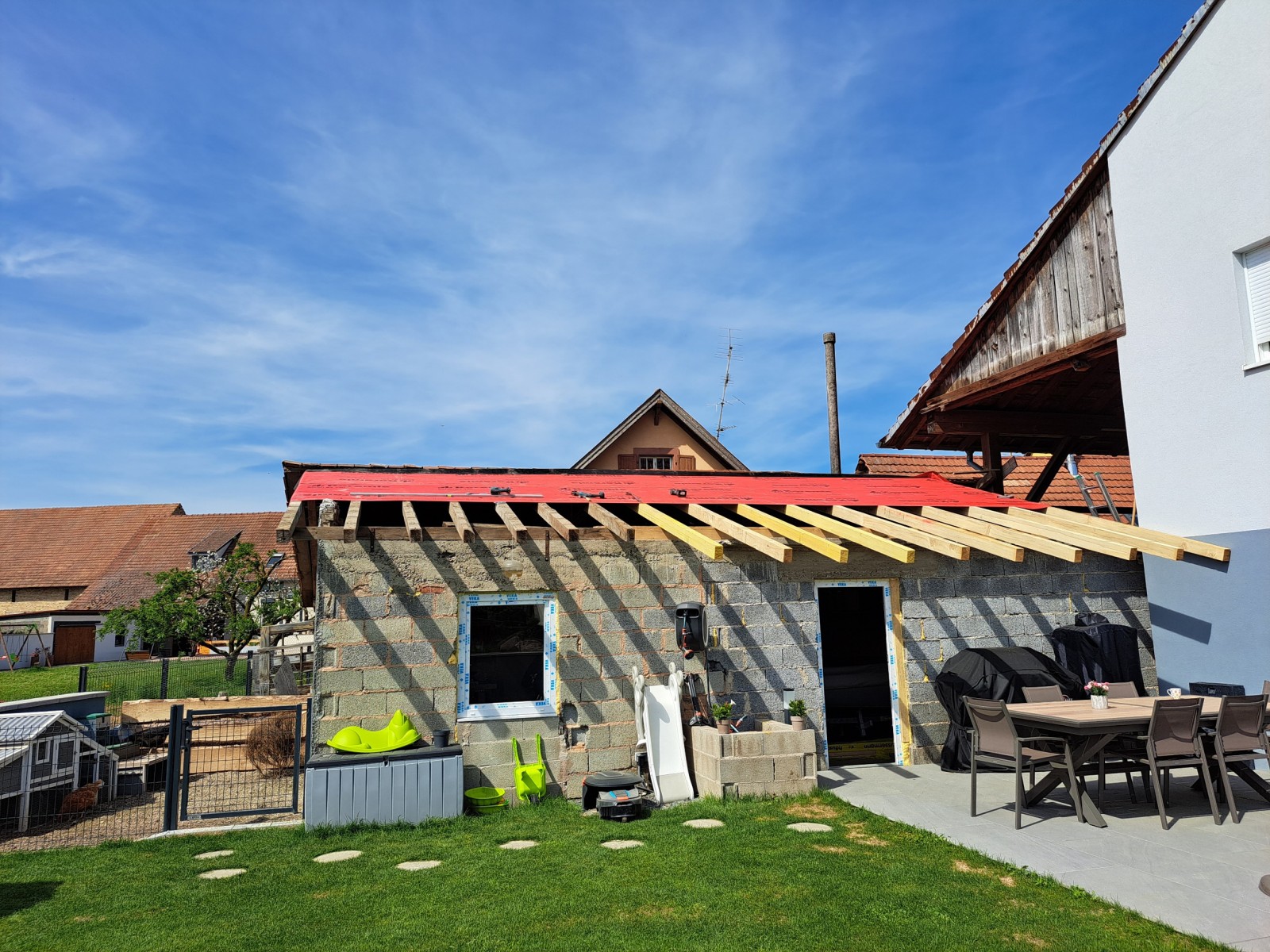 Suite à des infiltrations et des entrées d'eau sur ce garage en partie aménagé ce client de benfeld près de Strasbourg à voulu le changement de la couverture.